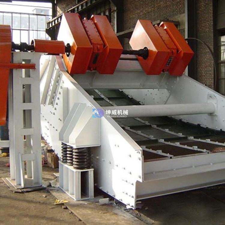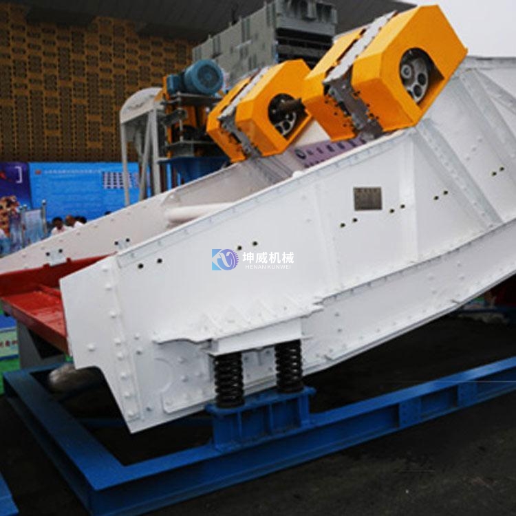 香蕉篩是在入料端有一較大的斜坡篩面,直到出料口為止,入料端的斜坡篩面可使更多的物料通過篩面時有較高的篩分速度和較薄的物料分層。